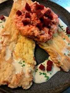 Knusper – Chinakohl Parmesanschaum/ Rote Beete-Risotto |